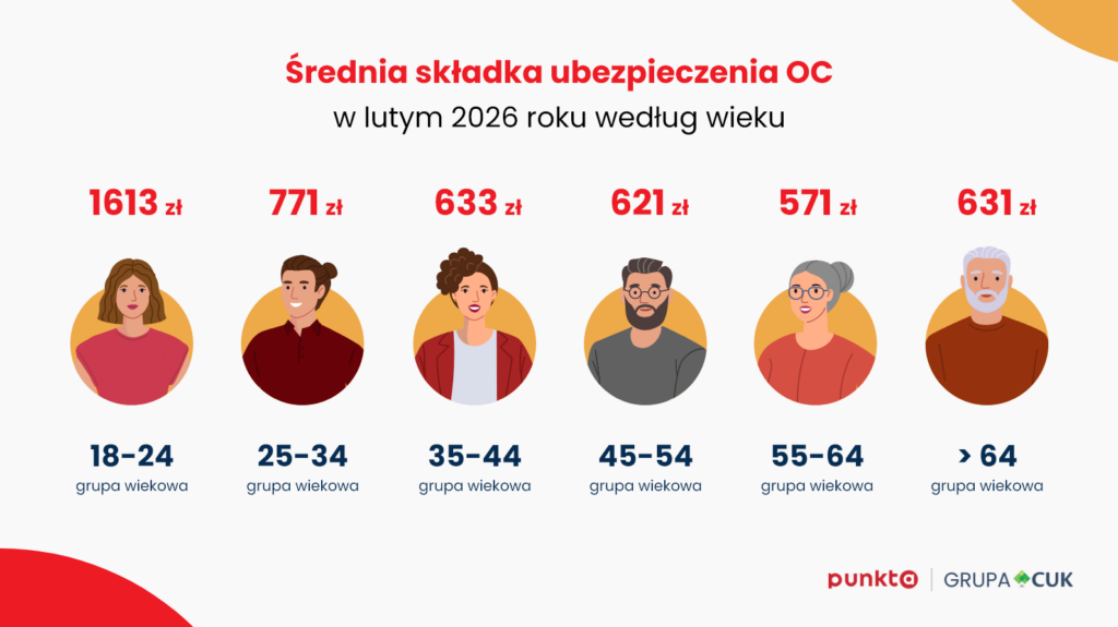 Jednym z najważniejszych czynników wpływających na cenę polisy jest wiek właściciela auta. W marcu 2026 roku prognozowane średnie ceny za ubezpieczenie OC dla konkretnych grup wiekowych kształtują się następująco: